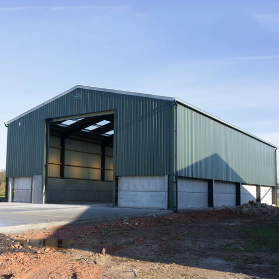 All major components (steel columns, beams, roof panels, walls) are pre-manufactured in a factory setting, ensuring precision and consistency in quality.